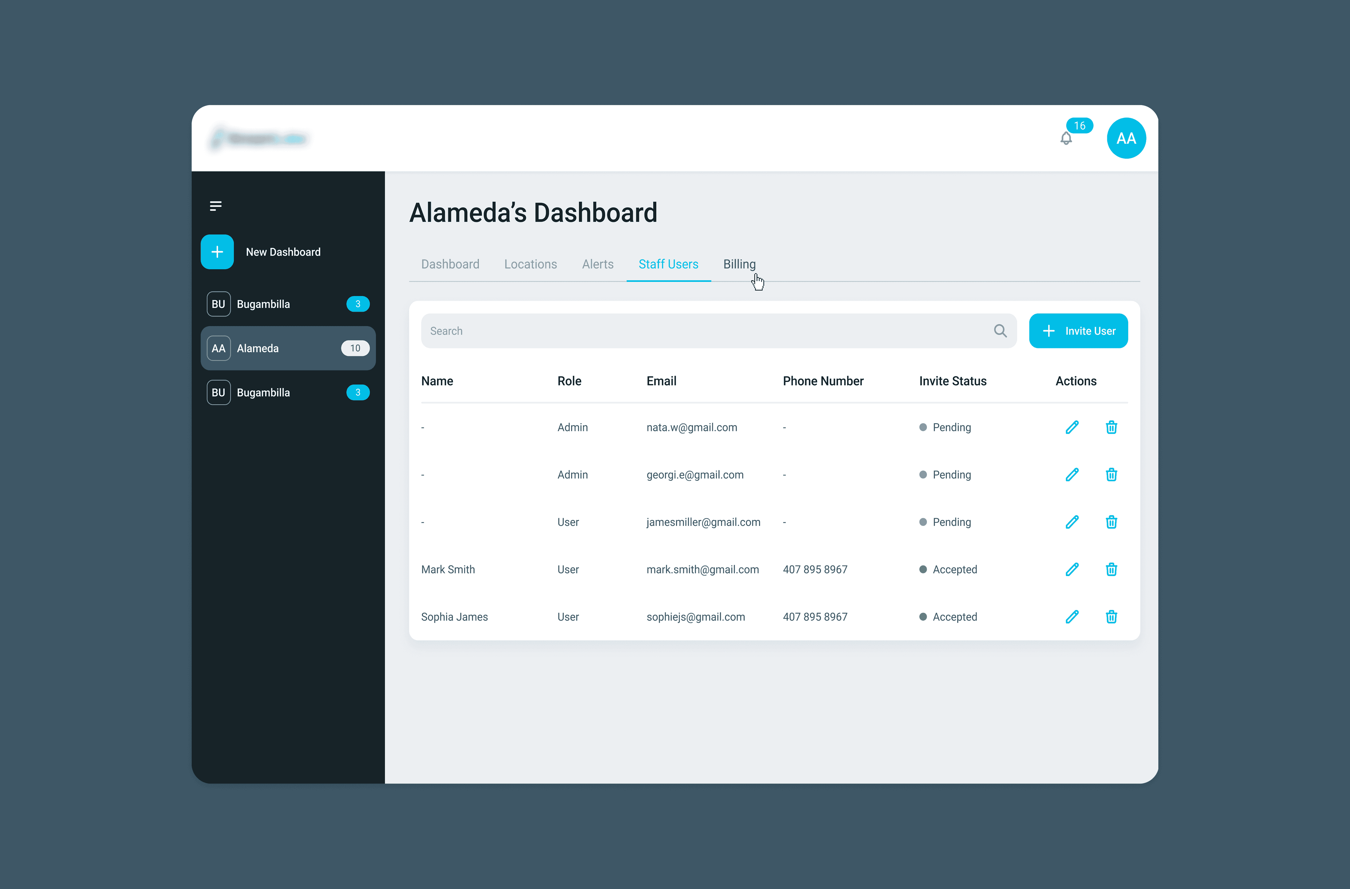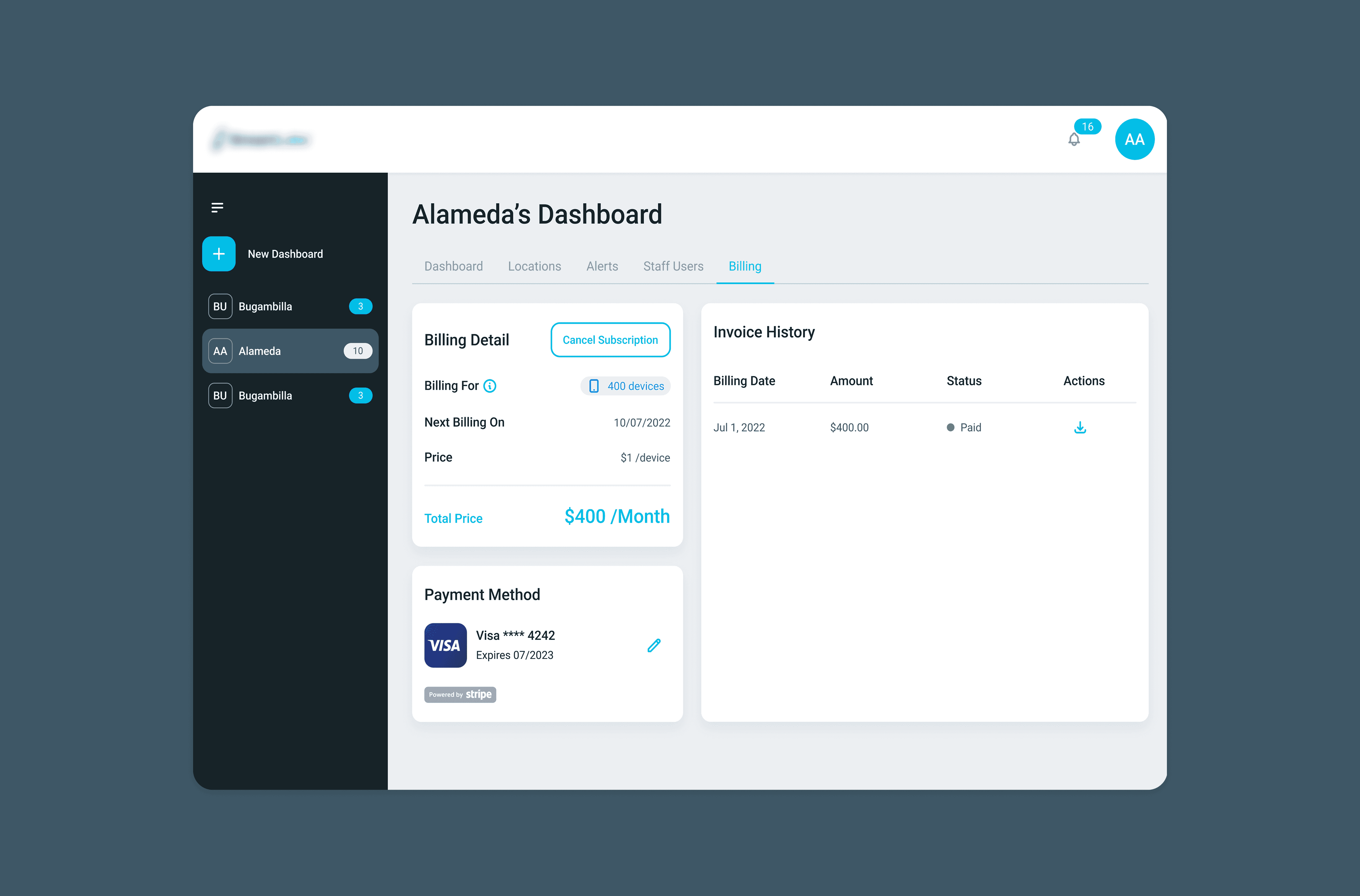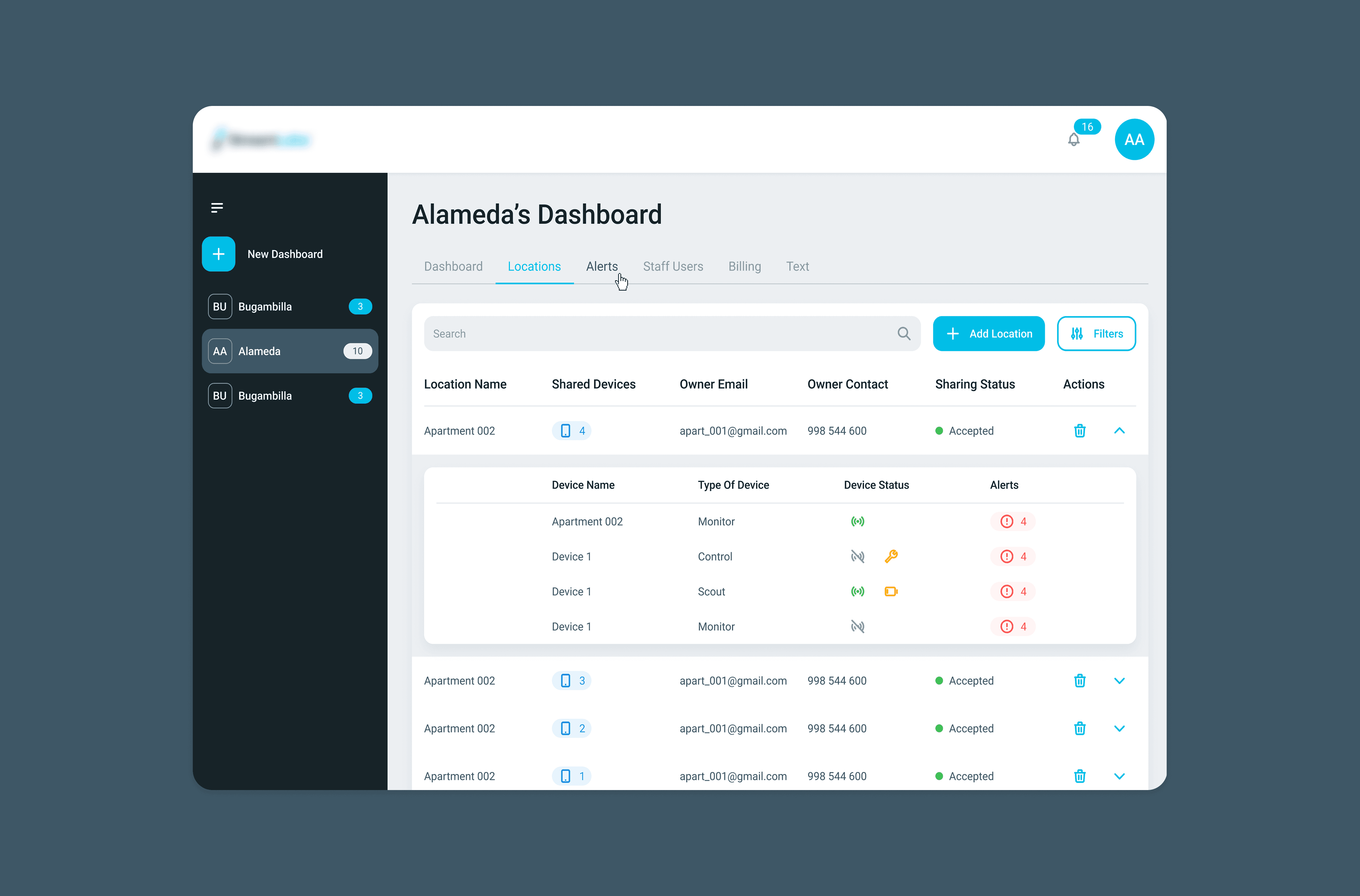 Facilitated leak data sharing between device owners and property owners, while enabling managers to monitor multiple locations from a single platform.